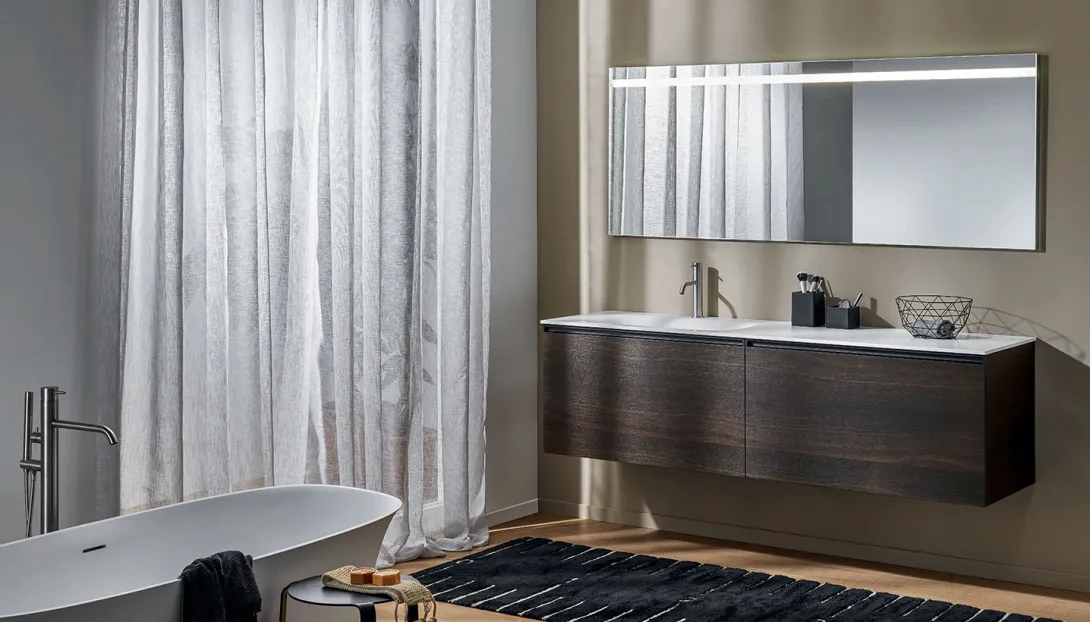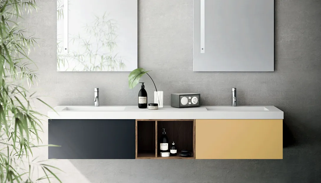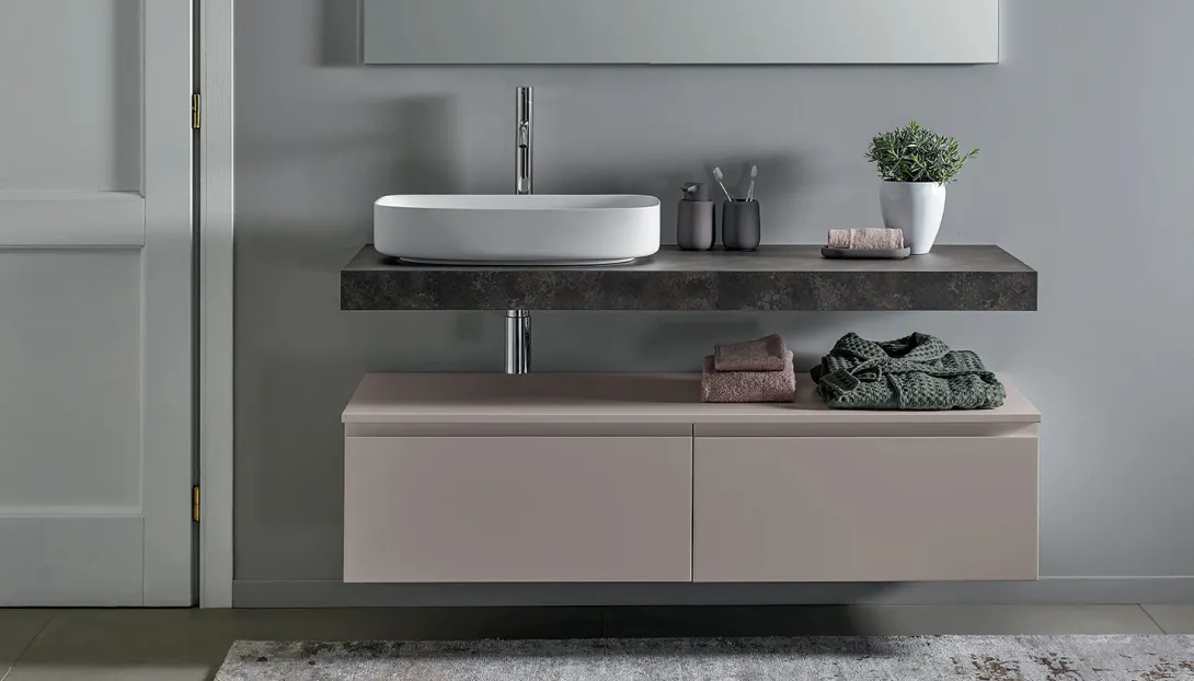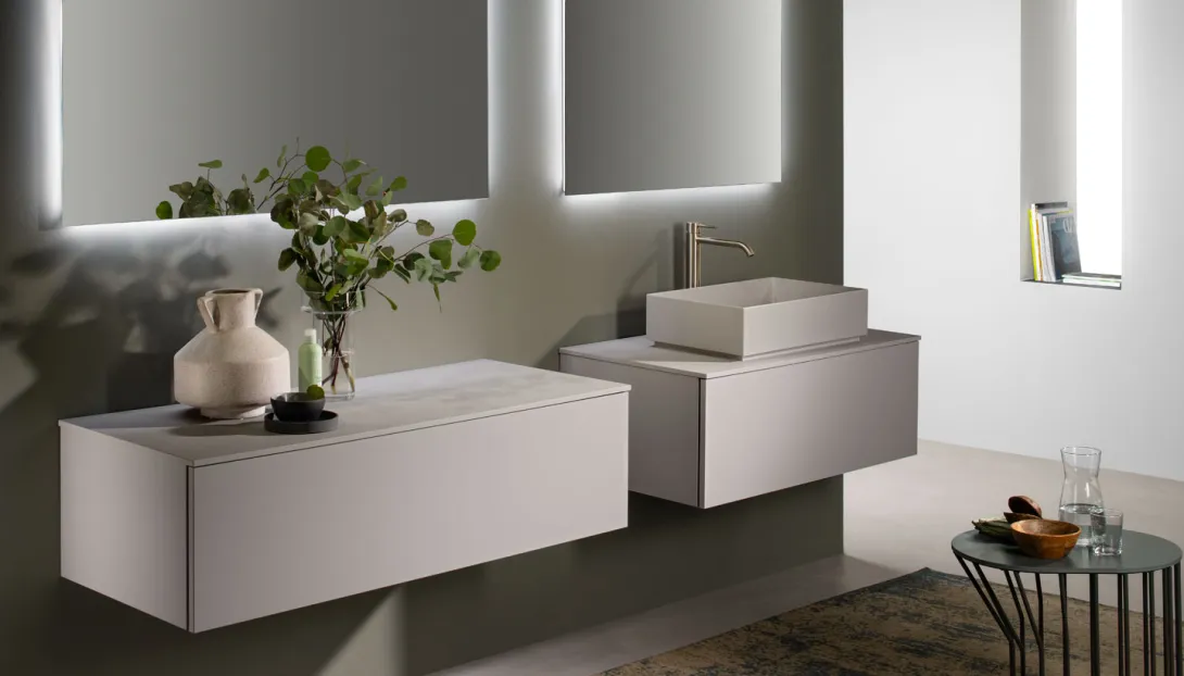- Kombinierbar mit integrierten Becken, Aufsatzwaschbecken, offenen Elementen und Unterschränken