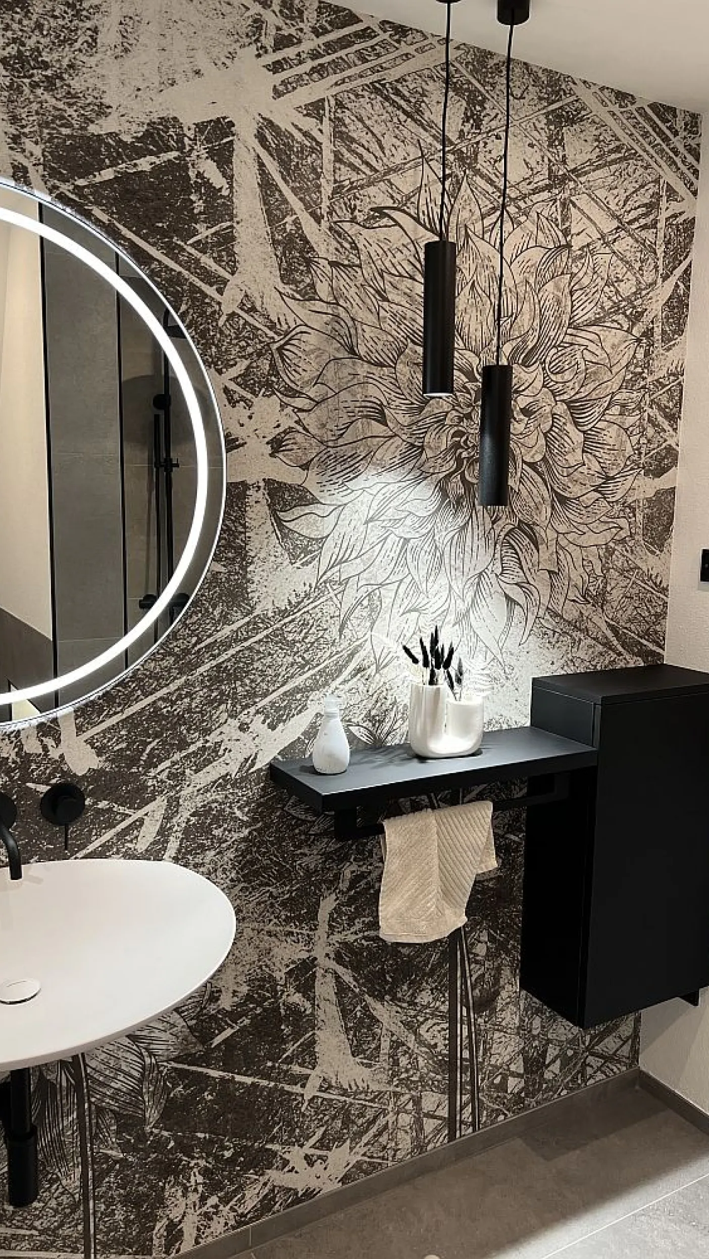 Fensterloses Gästebadezimmer mit modernen Wand-Muster in Maßbach