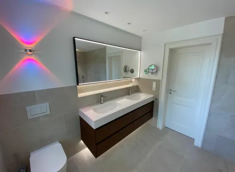 Der Ablauf einer Badsanierung ist komplexe Teamarbeit. Viele Gewerke arbeiten gemeinsam an Ihrem Traumbad. Wir koordinieren, planen und organisieren alle Gewerke. Ihr Vorteil: Sie haben einen Ansprechpartner, der eine zuverlässige und hochwertige Arbeitsweise aller beteiligten Handwerker garantiert.